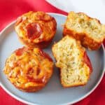 Store leftover pizza muffins in an airtight container in the refrigerator for up to 3 days. Reheat in the oven at 350°F for 5–7 minutes or microwave for about 30 seconds until warm. These muffins also freeze well—wrap tightly and freeze for up to 2 months.