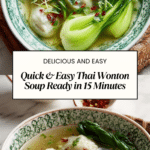 This easy Thai wonton soup is a comforting and flavorful dish that’s ready in just 15 minutes. With tender wontons, fresh bok choy, and a savory broth, it’s perfect for a quick lunch or light dinner.