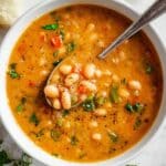Keywords: Fasolatha, white bean soup, Greek soup, cannellini beans, tomato soup, Mediterranean soup, vegetarian soup
