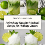 The Fauxjito Mocktail is a refreshing, zesty drink perfect for holiday gatherings or any time you want a festive, non-alcoholic treat. With bright lime, fresh mint, and a fizzy blend of club soda and sparkling water, this mocktail balances sweetness and tang for a lively, invigorating sip.
