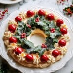 This Festive Christmas Hummus Wreath is a delightful and healthy appetizer that’s perfect for holiday gatherings. Featuring a creamy hummus base shaped into a wreath and adorned with colorful fresh vegetables and herbs, it makes for an attractive, nutritious, and crowd-pleasing starter that’s ready in just 15 minutes.