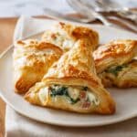 Savory Ham and Cheese Puffs made with flaky puff pastry, a creamy ham and spinach filling, and melted Swiss cheese, perfect for a delicious appetizer or snack.