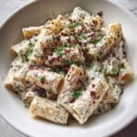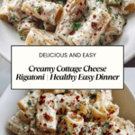 This Healthy Cottage Cheese Rigatoni recipe is an easy and cozy dinner idea that combines creamy cottage cheese sauce with fresh spinach, garlic, and Parmesan. Perfect for a nutritious weeknight meal, it features a smooth cottage cheese blend that provides protein and richness without heavy cream, paired with al dente rigatoni pasta and optional fresh cherry tomatoes and basil for brightness.