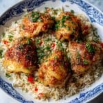 This healthy Portuguese chicken and rice dish is a flavorful one-pot meal that combines tender chicken, hearty brown rice, and vibrant vegetables. With smoky paprika and a touch of piri-piri seasoning, it offers a comforting yet lightly spiced experience perfect for weeknight dinners.