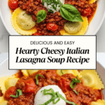 This Hearty Cheesy Italian Lasagna Soup is a comforting and flavorful twist on traditional lasagna, combining savory ground meat, aromatic herbs, tender broken lasagna noodles, and a luscious blend of ricotta, mozzarella, and Parmesan cheeses. Perfect for a cozy meal, this soup simmers gently to meld robust Italian flavors into a rich and satisfying bowl.