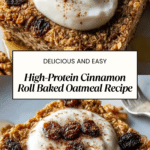 This High-Protein Cinnamon Roll Baked Oatmeal is a nutritious and delicious breakfast option combining the comforting flavors of cinnamon rolls with the health benefits of protein-packed oats. Made with rolled oats, vanilla protein powder, Greek yogurt, and naturally sweetened with honey or maple syrup, this baked oatmeal is perfect for a filling morning meal. With optional raisins and walnuts for added texture and flavor, it’s easy to prepare and bakes to a golden, satisfying finish.
