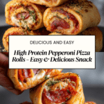 These High Protein Pepperoni Pizza Rolls are a delicious, wholesome snack or meal option made with whole wheat dough, low-fat mozzarella, and turkey pepperoni. Baked to golden perfection and seasoned with Italian herbs, they offer a healthier twist on classic pizza rolls, perfect for quick bites or family-friendly gatherings.