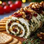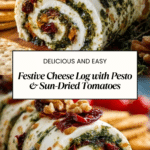 This Cheese Log with Pesto and Sun-Dried Tomatoes is a festive and flavorful appetizer perfect for any gathering. Creamy layers of cheese combine with vibrant pesto and tangy sun-dried tomatoes, all rolled in toasted walnuts and fresh parsley for a delightful presentation.