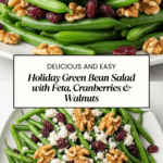 A refreshing Holiday Green Bean Salad featuring tender-crisp green beans tossed with tangy feta cheese, sweet dried cranberries, crunchy toasted walnuts, and a vibrant balsamic-honey dressing. Perfect as a festive side dish that combines crisp textures and bold flavors.