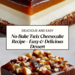 Keywords: No-Bake Twix Cheesecake, Chocolate Caramel Cheesecake, No-Bake Dessert, Easy Cheesecake, Twix Inspired Dessert