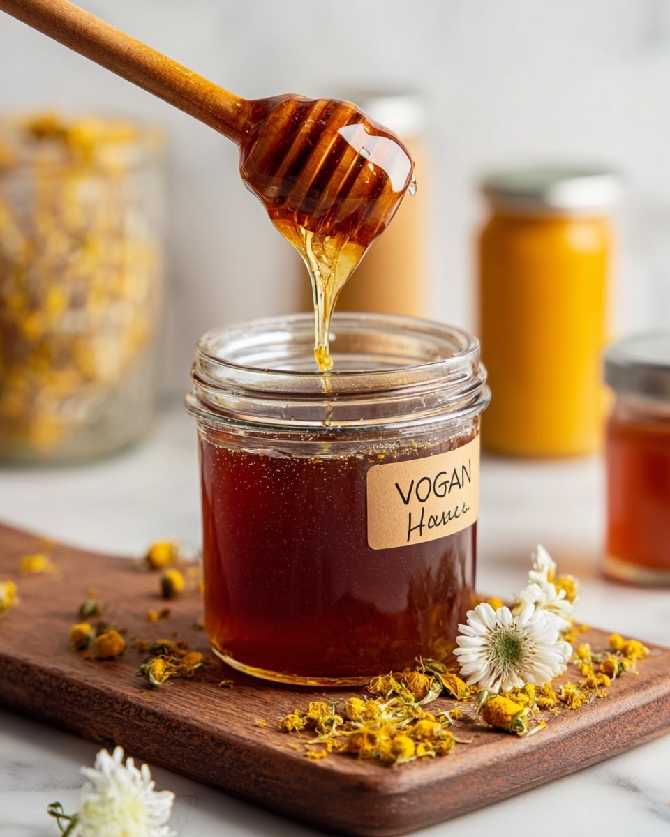 This homemade vegan honey is a delicious plant-based alternative that captures the sweetness and warmth of traditional honey without using any animal products. Easy to make and perfect for sweetening tea, drizzling on toast, or adding to recipes.