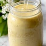 - Mix the Vinaigrette: Blend the ingredients in a blender for a few seconds until well incorporated, or alternatively whisk the ingredients vigorously in a bowl with a wire whisk, or place all ingredients in a mason jar, seal, and shake vigorously until emulsified.