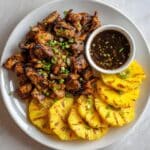 This Huli Huli Chicken recipe features tender chicken pieces marinated in a sweet and tangy blend of pineapple juice, soy sauce, brown sugar, and spices, then grilled to perfection. The marinade infuses the chicken with tropical flavors and a subtle kick of ginger and garlic, creating a delicious Hawaiian-inspired dish perfect for backyard barbecues or family dinners.