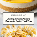 Keywords: banana pudding cheesecake, banana dessert recipe, vanilla wafer crust, creamy banana cheesecake, whipped cream topping, baked banana cheesecake