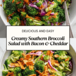 Keywords: Southern broccoli salad, creamy broccoli salad, bacon broccoli salad, cheddar broccoli salad, easy side dish, summer salad, picnic salad