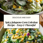 Jalapeno Corn Coleslaw is a bold and flavorful twist on the classic coleslaw, combining crunchy shredded cabbage and carrots with sweet corn, tangy pickled jalapeños, and a creamy dressing. Perfect as a spicy, fresh side dish for cookouts, barbecues, or year-round meals, this coleslaw balances sweet and spicy notes with a refreshing crunch that’s both easy to prepare and crowd-pleasing.