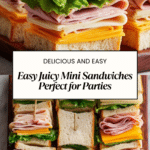 These Juicy Mini Sandwiches are the perfect party snack, combining tender deli ham, melted cheddar, fresh baby lettuce, and a creamy mustard-cream cheese spread on soft bread. Easy to prepare, customizable, and ideal for gatherings, they offer bite-sized portions packed with flavor that guests will love.