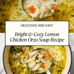 Keywords: lemon chicken orzo soup, chicken soup, lemon soup, one pot soup, comforting soup, easy soup recipe, chicken and pasta soup, homemade soup