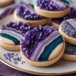 Magical Spiral Cookies are visually stunning, colorful cookies featuring layers of purple, black, and white dough spiraled together. These buttery, sweet, and soft-textured treats are perfect for parties or as a whimsical snack. The combination of almond and vanilla extracts adds a delightful aroma and flavor, while sprinkles give a playful finish to these charming homemade cookies.