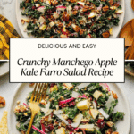 This Manchego Apple Kale Farro Salad is a vibrant and satisfying mix of nutty farro, hearty kale, sweet apples, and tangy dressing. Topped with a crunchy pecan and pumpkin seed topping, it’s perfect for a wholesome lunch or a fresh dinner side.