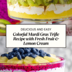 This vibrant Mardi Gras Trifle is a delightful layered dessert bursting with fresh tropical fruits, tangy lemon cream, and soft angel food cake. Perfect for festive gatherings, it offers a refreshing, colorful treat that’s both light and indulgent.