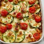 This Mediterranean Chicken Zucchini Bake is a healthy and flavorful one-dish meal combining tender chicken breasts, fresh zucchinis, cherry tomatoes, and aromatic herbs. Topped with melted mozzarella and Parmesan cheeses, it’s easy to prepare and perfect for a nutritious weeknight dinner or a cozy gathering.
