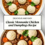 Mennonite Chicken and Dumplings is a comforting, hearty dish perfect for family dinners. Tender chicken simmers in a flavorful broth, paired with soft, fluffy dumplings for a satisfying meal everyone will love.