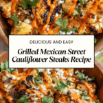 Keywords: Mexican street cauliflower, grilled cauliflower steaks, low carb Mexican recipes, elote style cauliflower, healthy grilled vegetables, cotija cheese cauliflower, Mexican street food inspired, cauliflower steak recipe