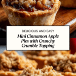 Keywords: mini apple pies, cinnamon apple pies, crumble topping, fall desserts, baked mini pies, holiday treats