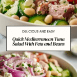 This Mouthwatering Mediterranean Tuna Salad combines flaky tuna, creamy cannellini beans, and crisp fresh vegetables like cucumber and grape tomatoes, all tossed in a vibrant red wine vinaigrette with lemon, oregano, and a touch of red pepper flakes. Finished with tangy feta cheese and fresh parsley, this no-cook salad is perfect for a quick, protein-packed, and refreshing meal. Ideal for busy weeknights or meal prep, it offers delicious Mediterranean flavors that get better as they marinate together.