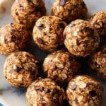 Store protein balls in an airtight container in the refrigerator for up to one week. They can also be frozen for up to three months—just thaw at room temperature before eating. No reheating is necessary; they are ready to enjoy straight from the fridge.