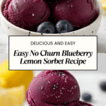 This No Churn Blueberry Lemon Sorbet is a refreshing and easy-to-make treat perfect for warm days. Combining frozen blueberries with zesty lemon and natural honey, it offers a vibrant flavor and smooth texture without the need for an ice cream maker.