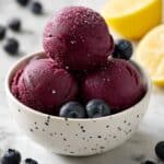 Keywords: blueberry sorbet, no churn sorbet, lemon blueberry frozen dessert, easy summer sorbet, healthy fruit sorbet