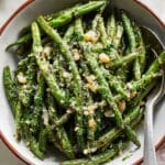 Keywords: oven roasted green beans, parmesan green beans, roasted vegetable side dish, easy green beans recipe, garlic parmesan side