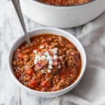 This Paleo Chili is a hearty and comforting dish made with grass-fed ground beef, spicy Italian sausage, and crispy bacon. Packed with flavorful diced tomatoes, rich beef stock, and a blend of aromatic spices, it simmers slowly to develop a deep, satisfying taste. This recipe is Whole30 compliant and perfect for those seeking a nutritious, paleo-friendly chili without beans.