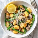 This vibrant Pan-Seared Gnocchi dish combines crispy golden potato dumplings with fragrant pesto, tender green beans, earthy mushrooms, and tangy sun-dried tomatoes. Finished with freshly grated Parmesan and a squeeze of lemon, this quick and flavorful meal is perfect for a satisfying weeknight dinner.