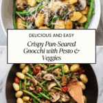 This vibrant Pan-Seared Gnocchi dish combines crispy golden potato dumplings with fragrant pesto, tender green beans, earthy mushrooms, and tangy sun-dried tomatoes. Finished with freshly grated Parmesan and a squeeze of lemon, this quick and flavorful meal is perfect for a satisfying weeknight dinner.