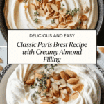 Keywords: Paris Brest, French pastry, choux pastry, cream-filled pastry, vanilla whipped cream, French dessert, almond topping