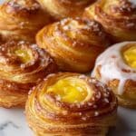 Store leftover cruffins in an airtight container at room temperature for up to 2 days. For longer storage, refrigerate for up to 4 days or freeze for up to 1 month. To reheat, warm in a 350°F (175°C) oven for about 10 minutes to restore flakiness and enjoy as if freshly baked.