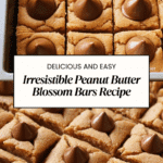 Keywords: Peanut Butter Blossom Bars, peanut butter bars, chocolate bars, peanut butter dessert, Hershey’s Kisses bars, easy baking recipe, nostalgic dessert