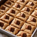 Keywords: Peanut Butter Blossom Bars, peanut butter bars, chocolate bars, peanut butter dessert, Hershey’s Kisses bars, easy baking recipe, nostalgic dessert