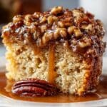 - Apply the Maple Caramel Sauce: Once the cake has cooled slightly but is still warm, pour the warm maple caramel sauce generously over the top. Allow the sauce to cascade over the pecans, creating a stunning and delicious finish.