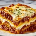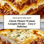 This Classic Lasagna recipe from Pioneer Woman combines rich layers of seasoned ground beef and Italian sausage, savory tomato sauce, creamy ricotta cheese, and melted mozzarella and Parmesan cheeses baked to golden perfection. Perfect for family dinners, this hearty Italian-American comfort food delivers a satisfying blend of flavors and textures in every bite.
