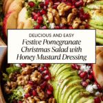 This Pomegranate Christmas Salad with Honey Mustard Dressing is a refreshing and festive side dish perfect for the holiday season. Crisp winter greens, crunchy candied nuts, and sweet pomegranate arils come together with a tangy honey mustard dressing that brightens your holiday table. It’s light, flavorful, and sure to be a crowd-pleaser.