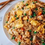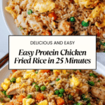 This Protein Chicken Fried Rice recipe is a quick and delicious meal packed with tender chicken, colorful mixed vegetables, and fluffy eggs, all perfectly seasoned with soy sauce and green onions. Ready in 25 minutes, it’s a satisfying homemade version of a classic takeout favorite.