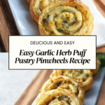 These Puff Pastry Garlic n’ Herb Pinwheels are a perfect savory snack or appetizer that’s quick to prepare and bursting with flavor. Crispy, buttery, and packed with garlic and fresh herbs, they’re sure to impress at any gathering.