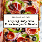 Keywords: puff pastry pizza, quick pizza recipe, easy appetizer, mini pizza, baked pizza