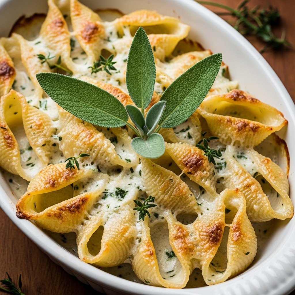 Pumpkin & Gouda Stuffed Shells with Brown Butter Sage Alfredo Sauce