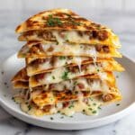 These Quick Chicken Bacon Ranch Quesadillas are a delicious and easy-to-make meal featuring tender chicken, crispy bacon, creamy ranch dressing, and melty cheese all folded into warm, crispy flour tortillas. Ready in just 25 minutes, they make a perfect weeknight dinner or snack for any occasion.