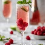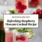 A refreshing and bubbly Raspberry Moscato Cocktail featuring fresh raspberries, sweet Moscato wine, and a splash of vodka, topped with sparkling water and garnished with mint for a perfect balance of fruity and effervescent flavors.